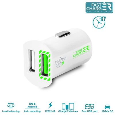 Strona głównaAUDIO VIDEOAKCESORIA AUDIOPURO Mini Car Fast Charger - Uniwersalna ładowarka samochodowa 2 x USB 2.4 A (biały)