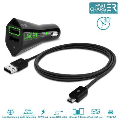 Strona głównaAUDIO VIDEOAKCESORIA AUDIOPURO Car Fast Charger - Ładowarka samochodowa z odpinanym kalem Micro USB 2.4 A (czarny)