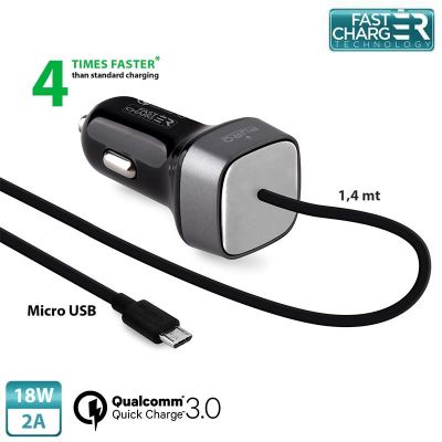 PURO Fast Compact Mini Car Charger - Uniwersalna ładowarka samochodowa z kablem Micro USB, 2 A, Qual