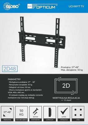 Strona głównaRTV#Uchwyty#Telewizorów#Regulacja 1DUCHWYT LCD/TV 37''-48'' Globo 2D48
